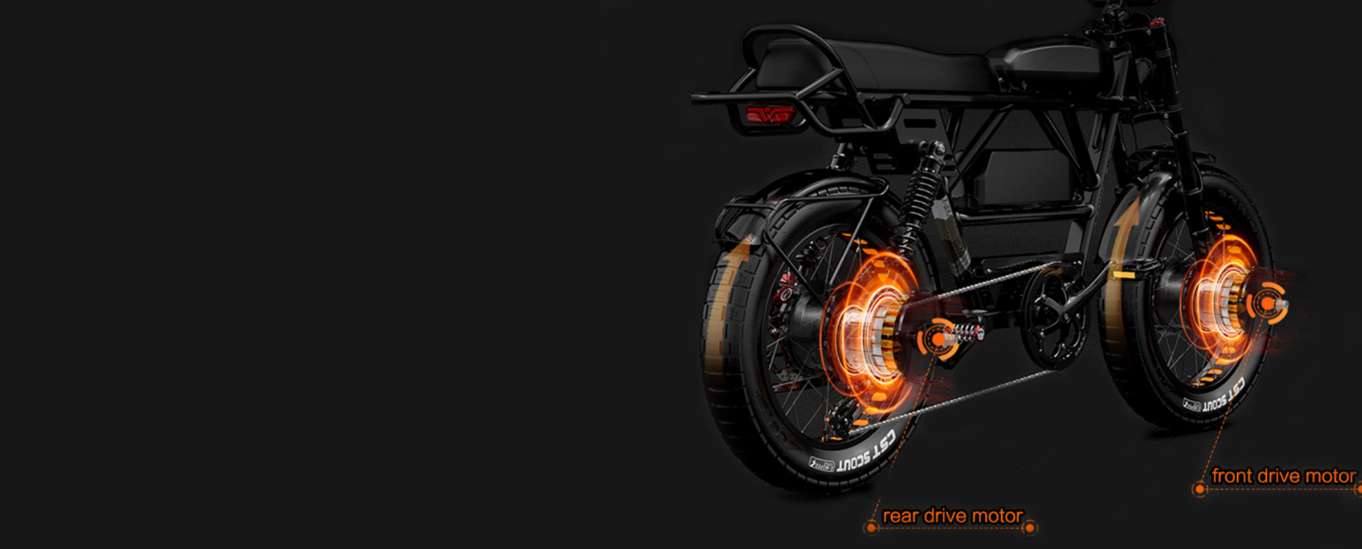 | Motor | 48V 250W bürstenloser Vorderradmotor und 250W bürstenloser Hinterradmotor, max. Drehmoment 95 Nm |